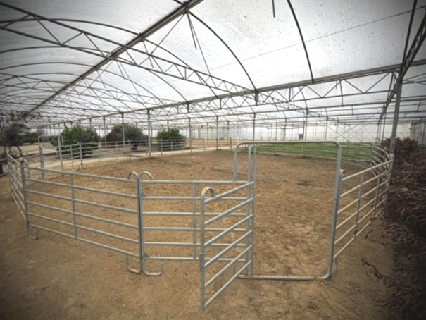 8 paddocks INTÉRIEURS électrifiés en herbe de 10m x 20m (en saison hivernale)